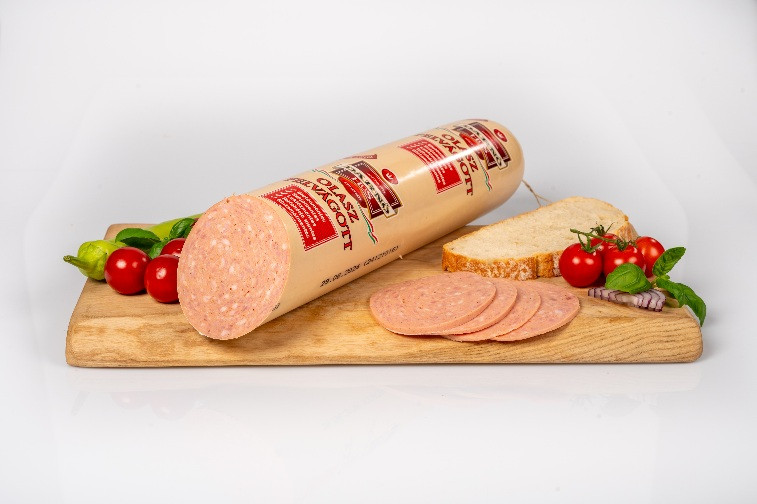 hús-csirke (10%), sertés bőrke, keményítő (burgonya, kukorica), nitrites pác só
