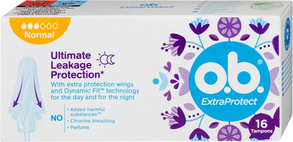 Exrtra Protect: Maximális szivárgás elleni védelem*. Az o.b.® ExtraProtect tampon két vezető technológiát ötvöz és akár 100%-os szivárgás elleni védelmet biztosít napközben és éjszaka. Az Extra SilkTouch® védőszárnyak gyengéden nyílnak szét, hogy azt a folyadékot is felfogják, amit más tamponok esetleg nem képesek - Az egyedi Dynamic Fit™ technológiának köszönhetően a tampon igazodik a test alakjához, az összefonódó bordázat pedig hatékonyan segít eloszlatni a folyadékot a tampon belsejében - Hozzáadott káros vegyszerek**, klóros fehérítő és illatanyag nélkül