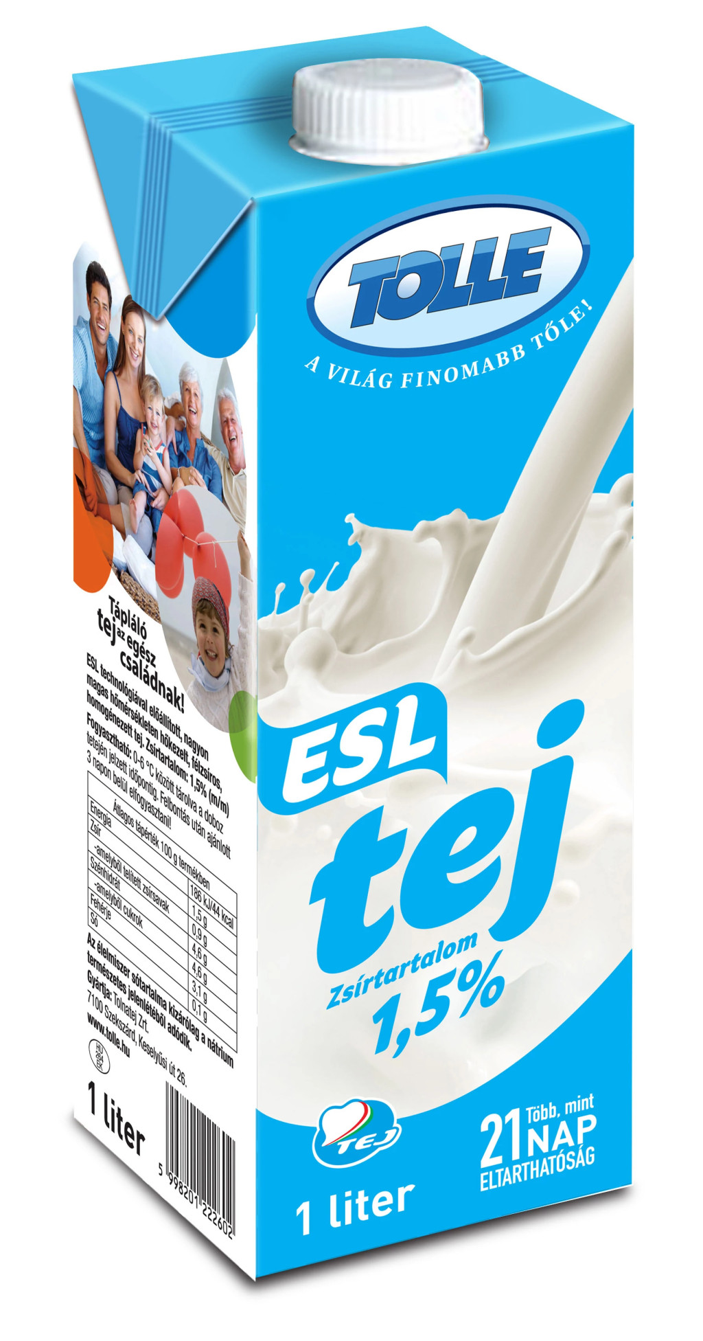 A Tolle ESL Tej 1,5% egy ESL (Extended Shelf Life) technológiával készült, magas hőmérsékleten hőkezelt, homogénezett, zsírszegény tej. A termék 1 literes kiszerelésben kapható, és ideális választás azok számára, akik hosszabb ideig eltartható, de mégis friss ízű tejet keresnek, és fontos számukra a csökkentett zsírtartalom.